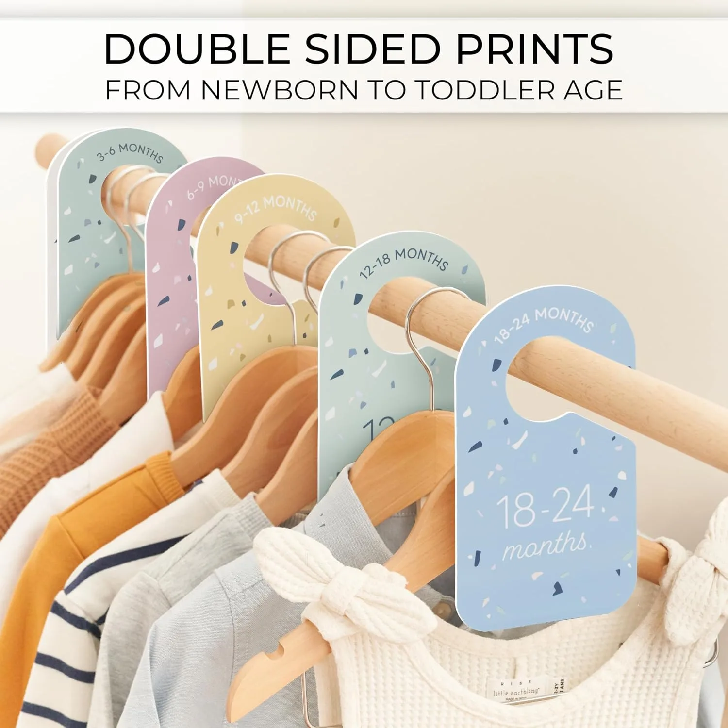 Let’s talk about the magic they bring. Each set comes with 8 stylish double-sided dividers, clearly marked for every stage: from Newborn, 0-3 Months, 3-6 Months, 6-9 Months, 9-12 Months, 12-18 Months, 18-24 Months, all the way to ‘Toddler’. This comprehensive range means you’re covered for your child’s entire early development, allowing you to easily sort and identify clothes as your little one grows at lightning speed. No more guesswork, no more pulling out multiple outfits to find the right size. With KIBAGA, you simply glide your hand across the rail and pinpoint exactly what you need.