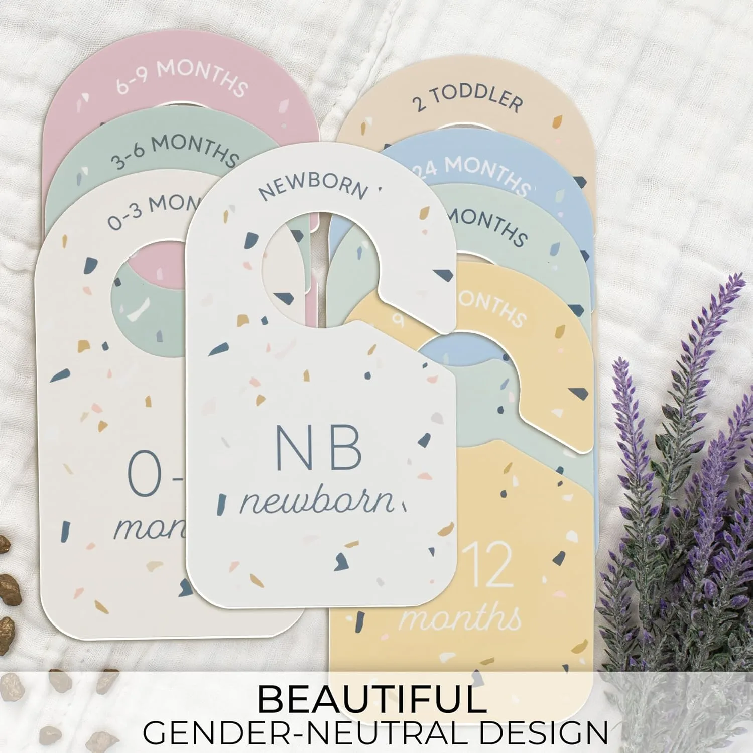 A4: The KIBAGA Baby Closet Dividers boast a beautiful and modern terrazzo design with a palette of harmonious, calming colors. This aesthetic was specifically chosen to be gender-neutral, making them a perfect fit for any nursery, whether you’re decorating for a baby girl, a baby boy, or even if you’re keeping the gender a surprise. The elegant and contemporary look complements a wide range of nursery themes and décor styles, adding a touch of sophisticated charm to your little one’s space.