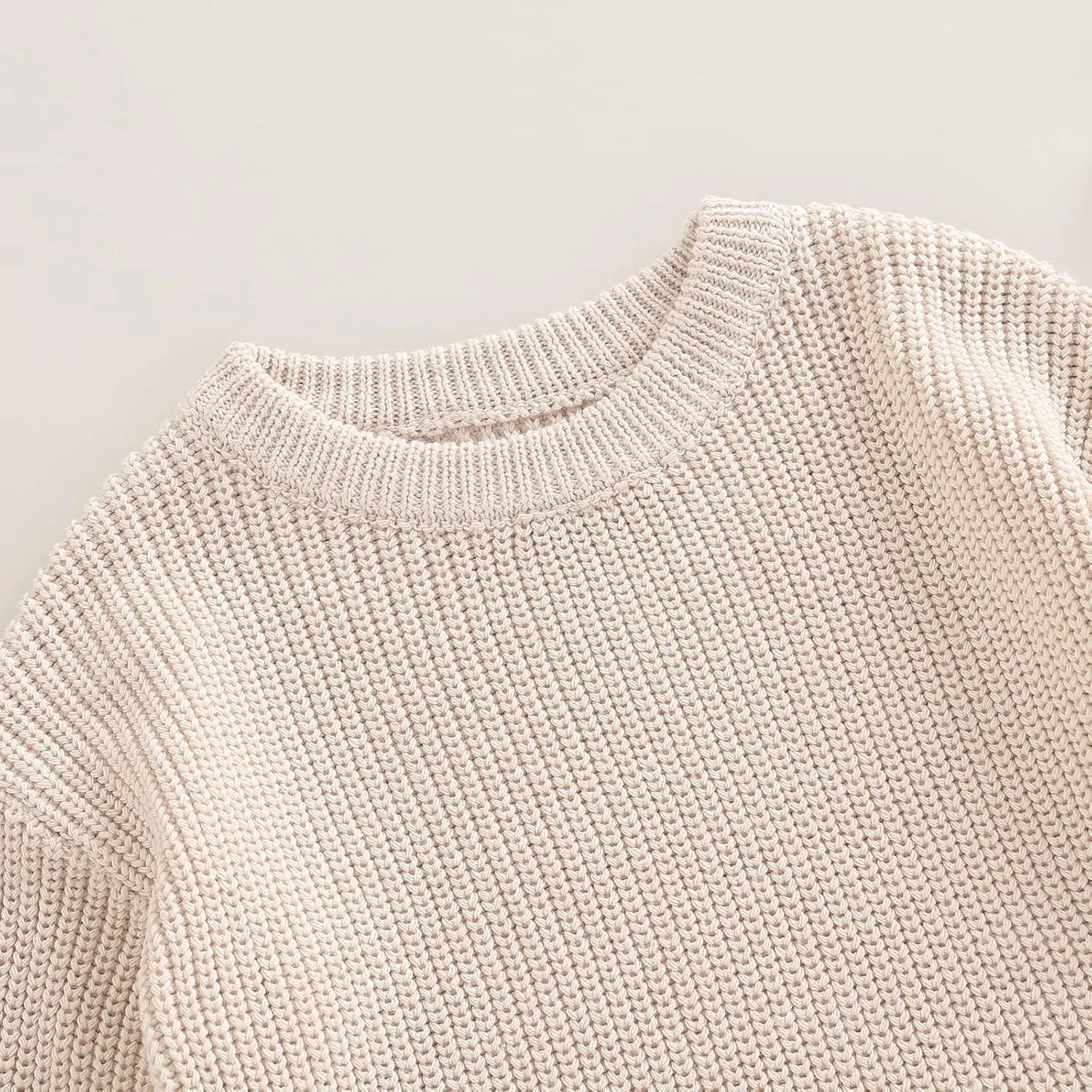 The design speaks volumes too. It features a hand-crochet look, a chunky cable knit, and an oversized, loose crewneck pullover style. This isn’t just about aesthetics; it’s about functionality. The “oversized” fit isn’t a mistake; it’s a deliberate choice that offers several benefits. Firstly, it allows for easy layering on colder days, giving you flexibility to adjust your baby’s warmth. Secondly, it provides ample room for movement, so your active crawler or budding walker isn’t restricted. And finally, it means a bit of growing room, potentially letting your little one enjoy this cozy piece for a longer period, making it excellent value. Available in sizes from 0-3 months all the way up to 12-18 months, there’s a cozy fit for infants through toddlers, ensuring your little one is enveloped in warmth and charm from newborn cuddles through their first curious adventures.
