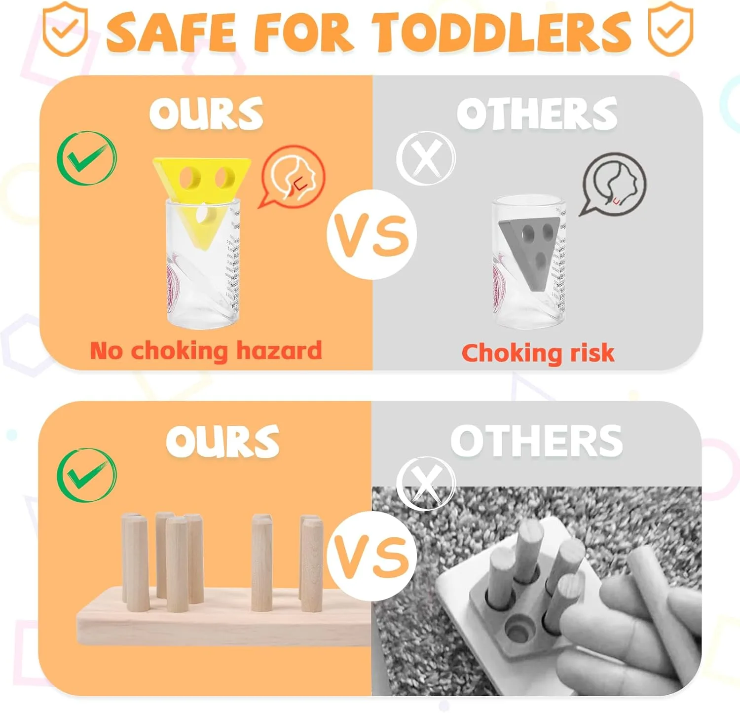 Imagine a toy that feels as good in your hands as it does for your child’s developing mind. That’s precisely what you’ll find with these Montessori-inspired wooden stacking and shape-sorting toys. Designed with purpose, every feature of this preschool learning tool translates directly into a tangible benefit for your little one, and importantly, peace of mind for you.