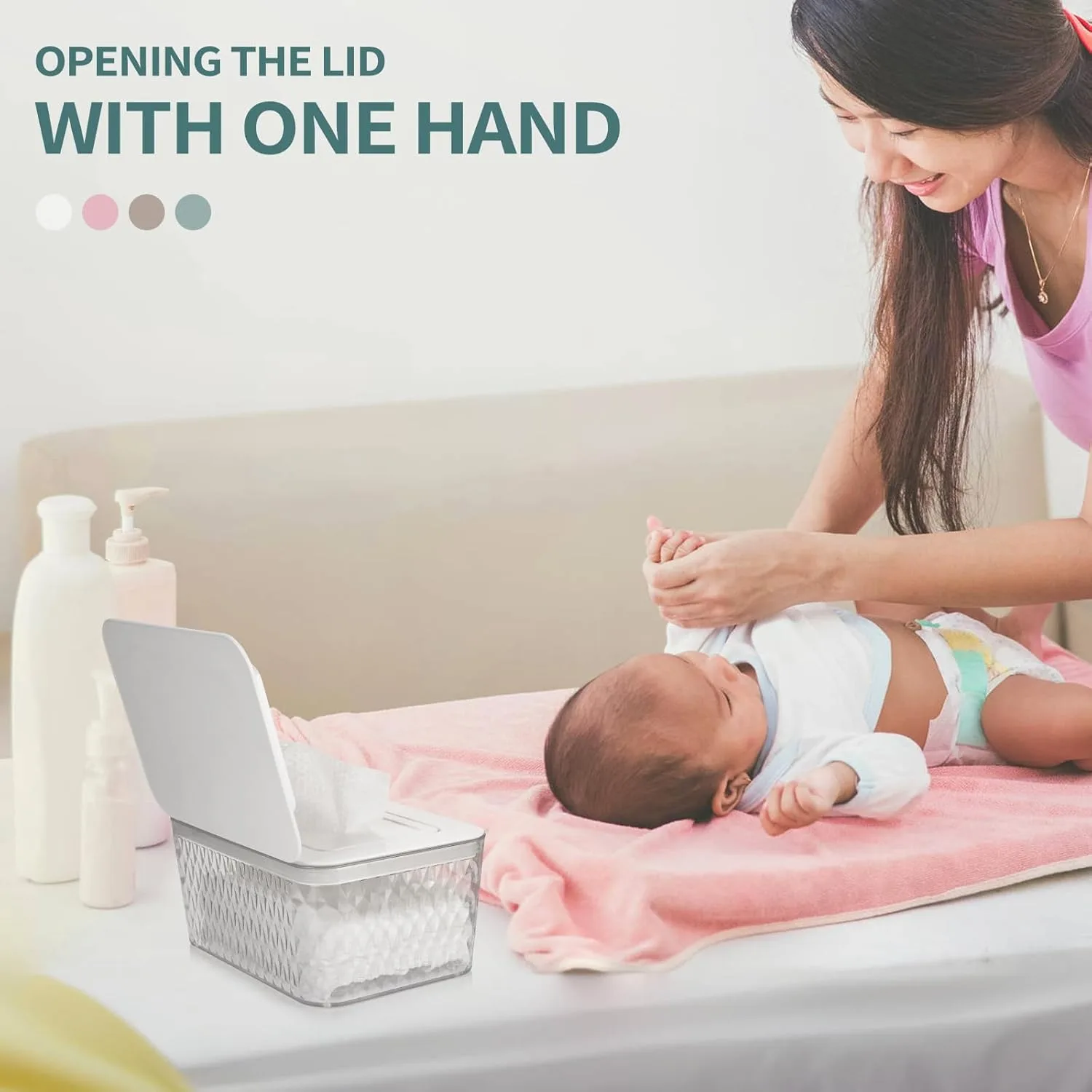 The Diaper Changing Sanctuary: Imagine it’s 3 AM. Your little one has just made a monumental mess, and you’re operating on autopilot. You fumble for the wipes, but instead of wrestling with a crinkly bag while holding down a squirming baby, your hand effortlessly glides to the dispenser. With a simple, non-slip push, a perfectly moist wipe is ready. Your other hand is free to keep your baby safe and secure, the entire process streamlined and stress-free. The transparent design means you noticed before bedtime that you were running low, so you’re not caught off guard in the dark.