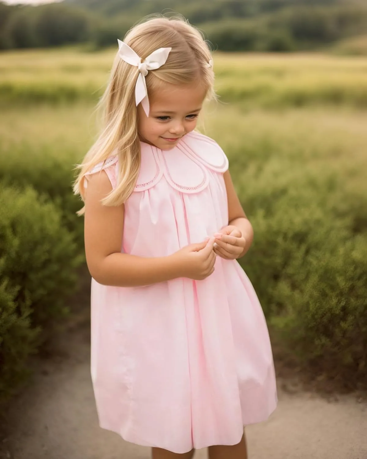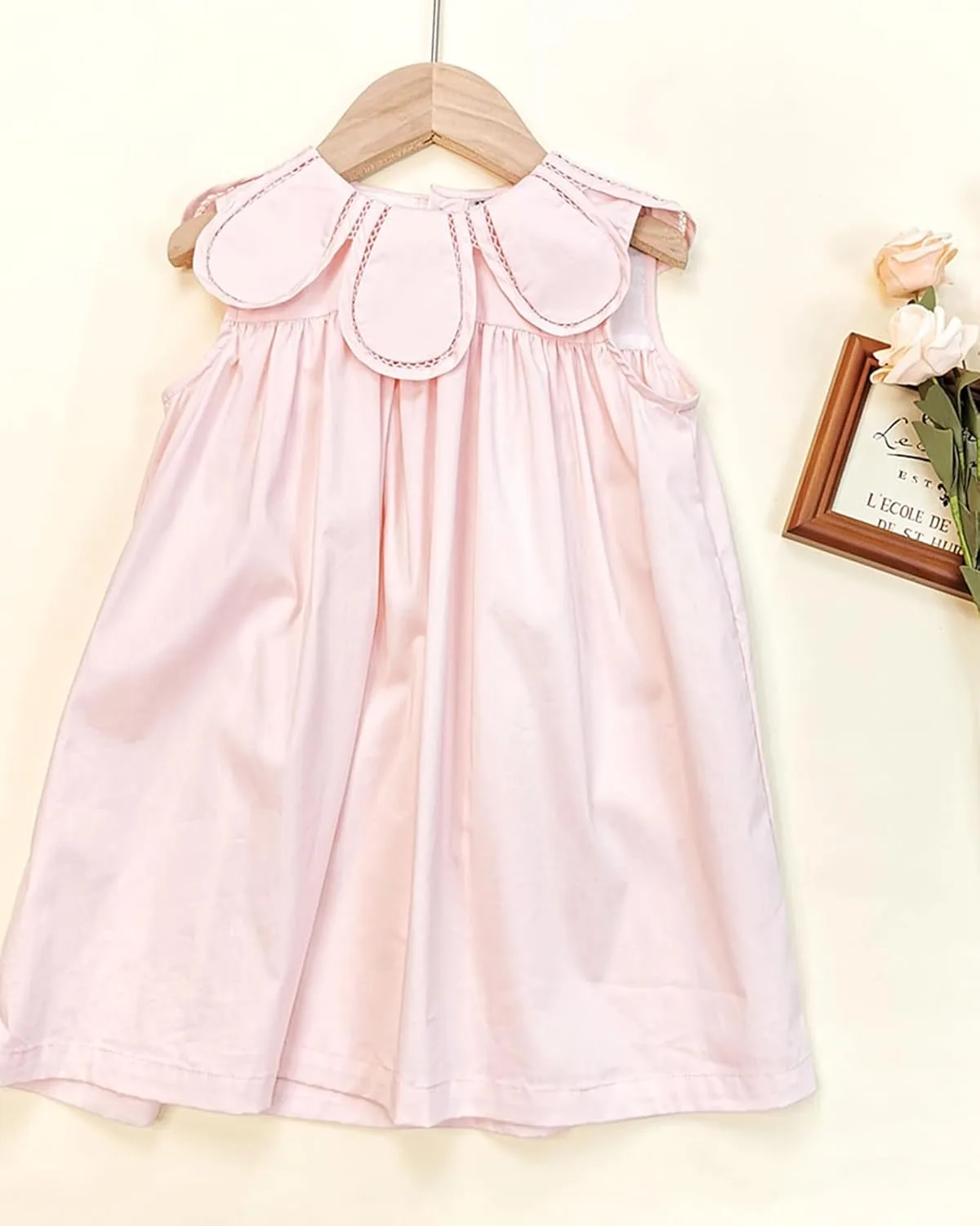 The design is a harmonious blend of classic elegance and modern convenience. The sleeveless cut ensures unrestricted movement, ideal for active toddlers who love to run, jump, and twirl. The smocked detailing adds a delightful texture and ensures a comfortable, flexible fit that adapts as your child grows. Thoughtful touches like the ruffled chest and a button at the front of the body make dressing and undressing an absolute breeze – a small detail that makes a world of difference during busy mornings or quick changes. This isn’t just a pretty dress; it’s a smart solution for busy parents and energetic children, marrying the timeless appeal of a classic A-line silhouette with the everyday practicalities of easy wearability. And let’s not forget the popular pink fabric, a color beloved by little girls everywhere, adding an extra layer of sweetness and charm.