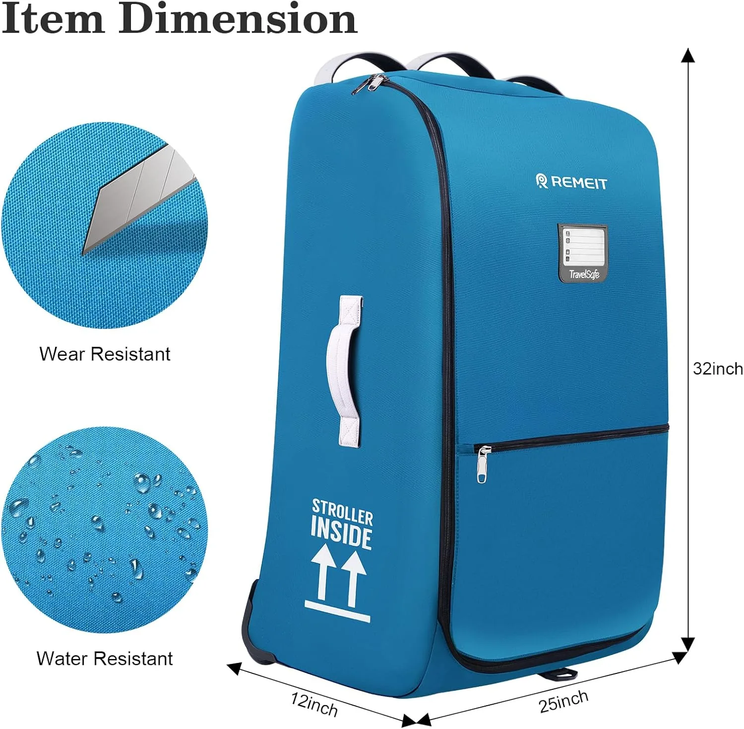 A: Not at all! This travel bag is designed for effortless transport. It’s equipped with smooth, rolling wheels that allow you to easily pull it alongside your other luggage, even with a full stroller inside. Additionally, it features multiple sturdy handles, offering various carrying options for lifting, maneuvering, and handling, making your journey through the airport as seamless as possible.